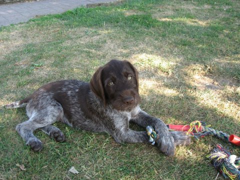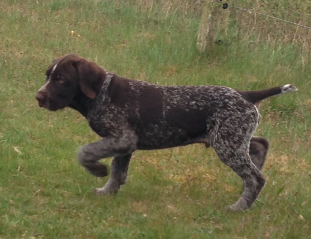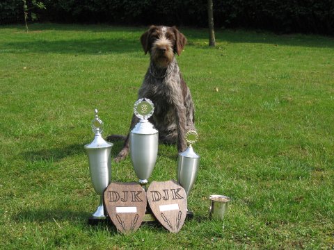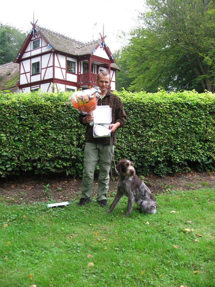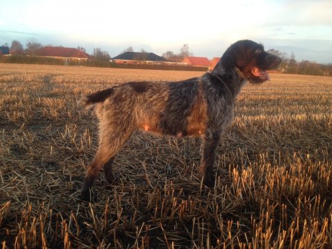 5/4-2014 Fanny blev 4. vinder på Ruhårsklubbens Forårs Vinderklasse Markprøve i Grenaa.