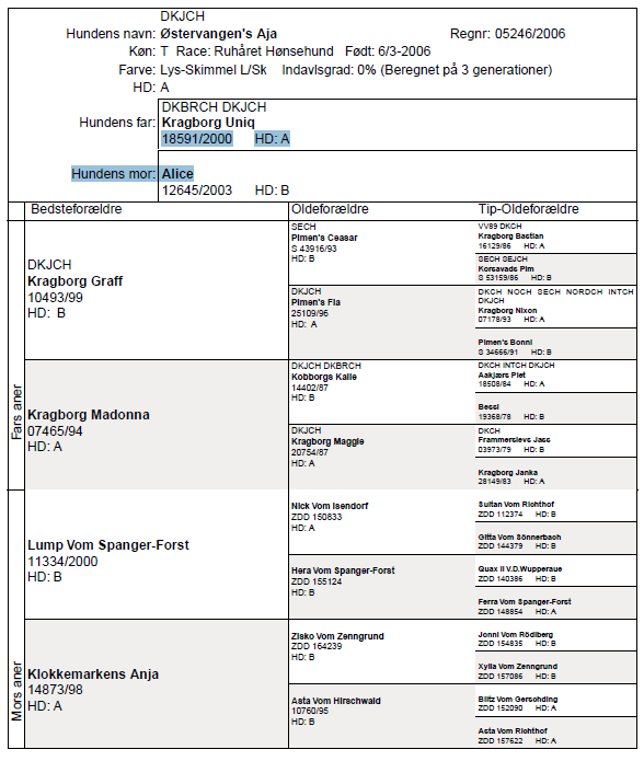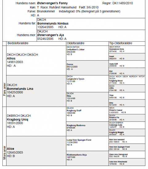 Stamtavle Østervangen`s Aja